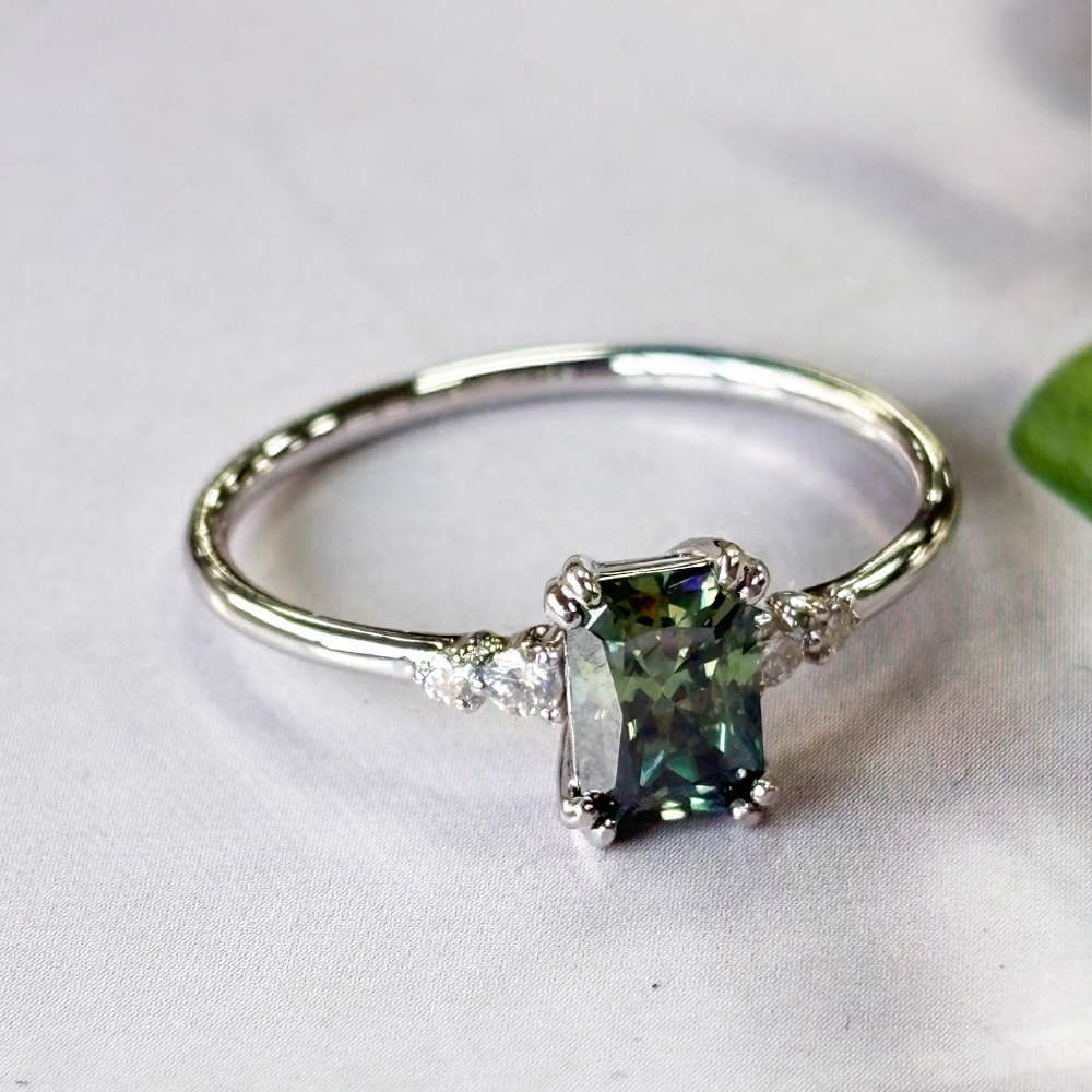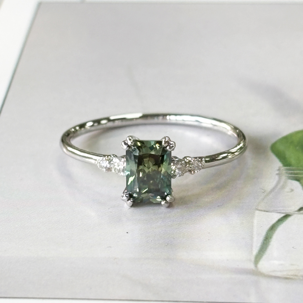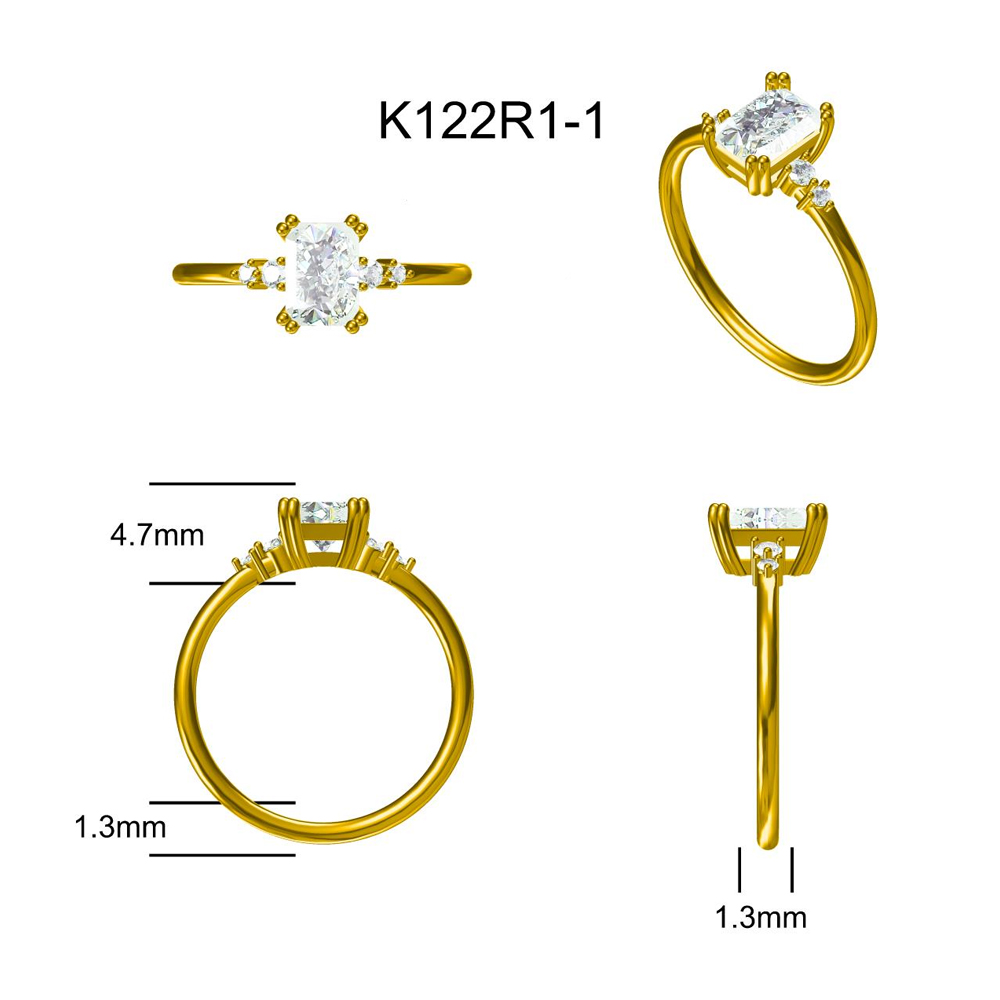 • Measurement – 1.3mm band width. Center stone – 5mm*7mm radiant cut .
